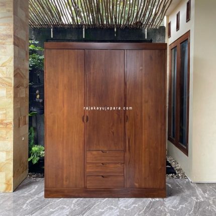 Lemari Pakaian Pintu 3 Model Modern Minimalis Kayu Jati RKJ-LMP 02