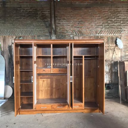 Model Custom Lemari Baju Pintu 4 Kayu Jati Modern Minimalis RKJ-LMP 04