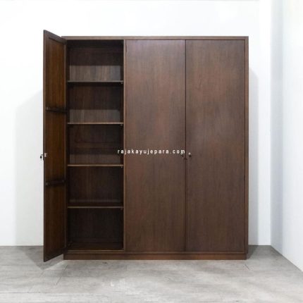 Harga Lemari Baju Pintu 3 Kayu Jati Model Modern Minimalis RKJ-LMP 03