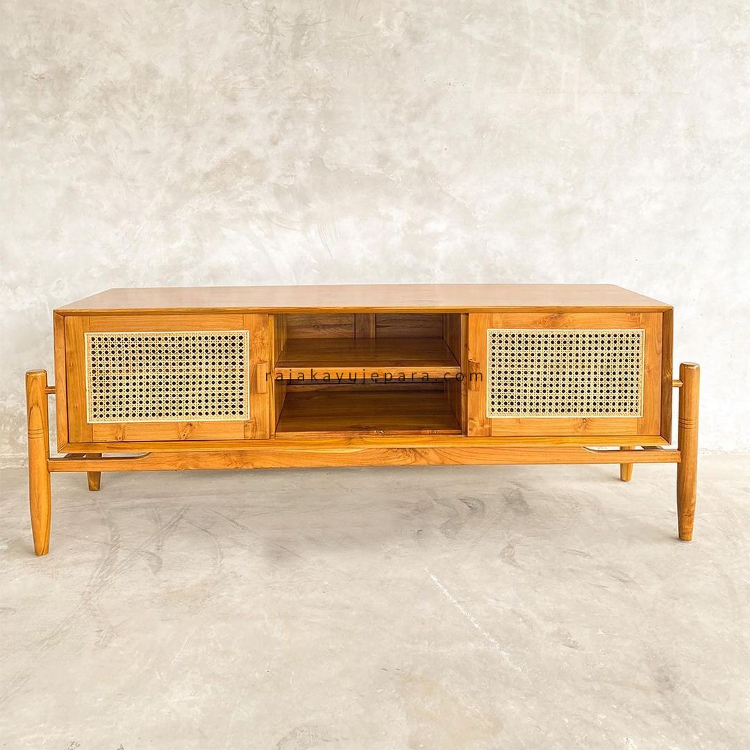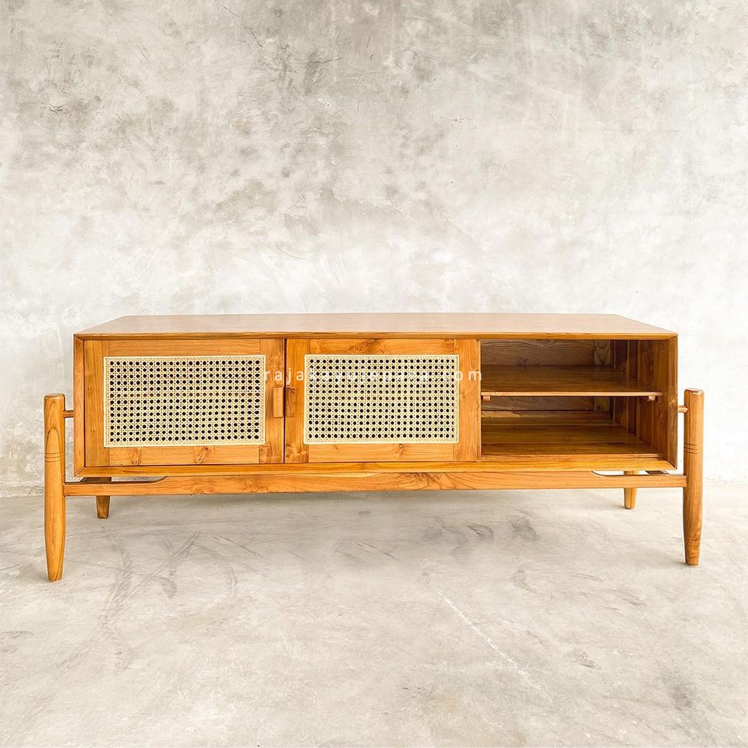Buffet Meja TV Mebel Vintage Kayu Jati Kombinasi Rotan RKJ-BUFTV 07