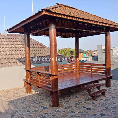Gazebo Minimalis Atap Sirap Kayu Jati RKJ-GZO 04