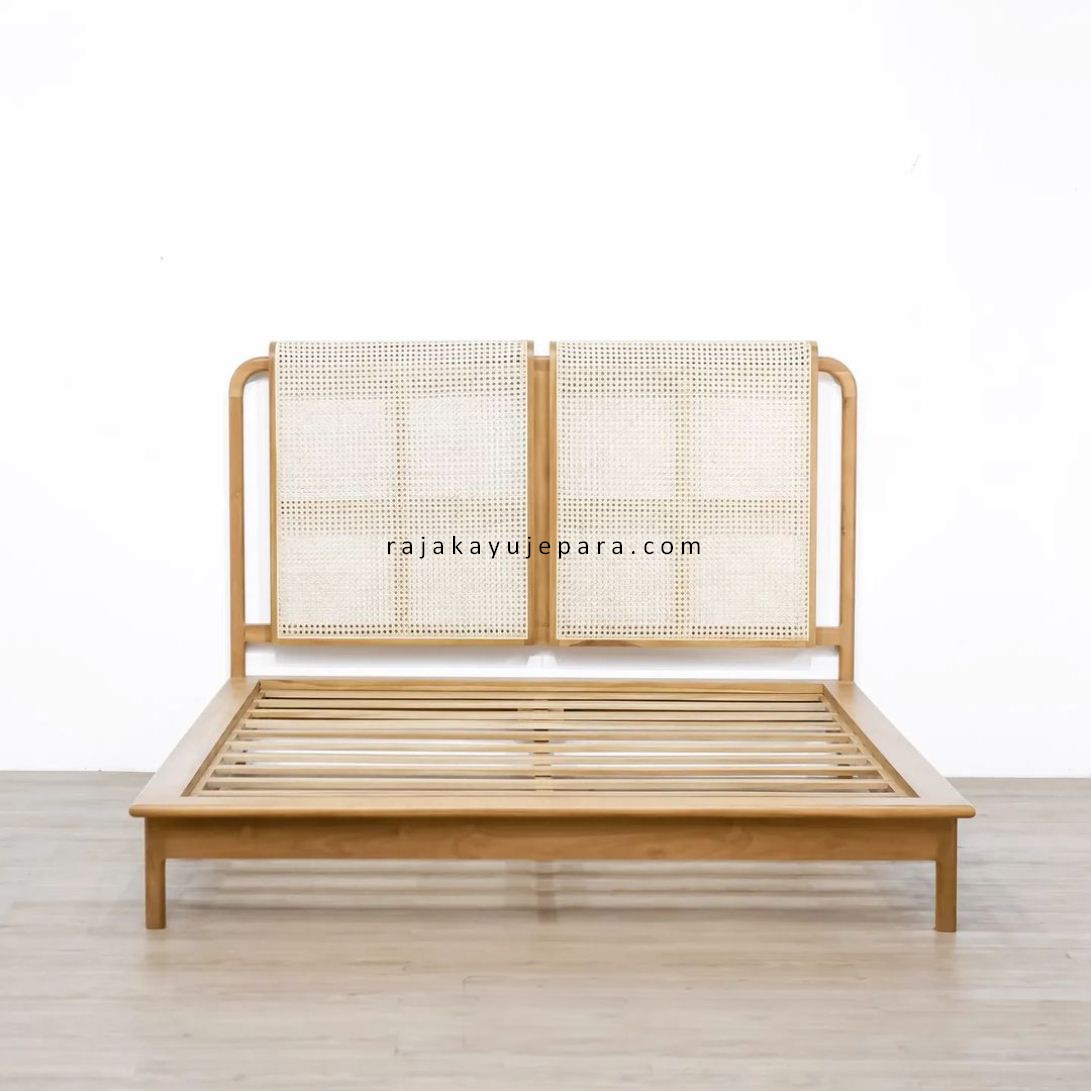 Harga Ranjang Minimalis Modern Kayu Jati Kombinasi Rotan RJK-TTDR 04