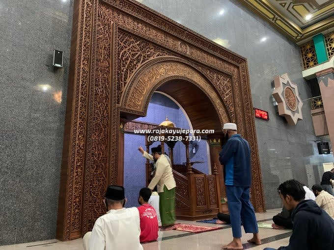 Mihrob Masjid Tempat Imam Ukiran Kayu Jati Perhutani RKJ-FUM 05