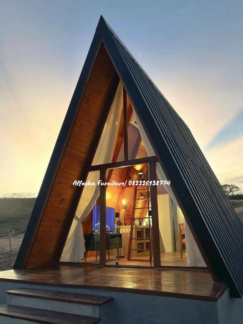 Rumah Glamping Kayu Jati | Rumah Segitiga Kayu Jati