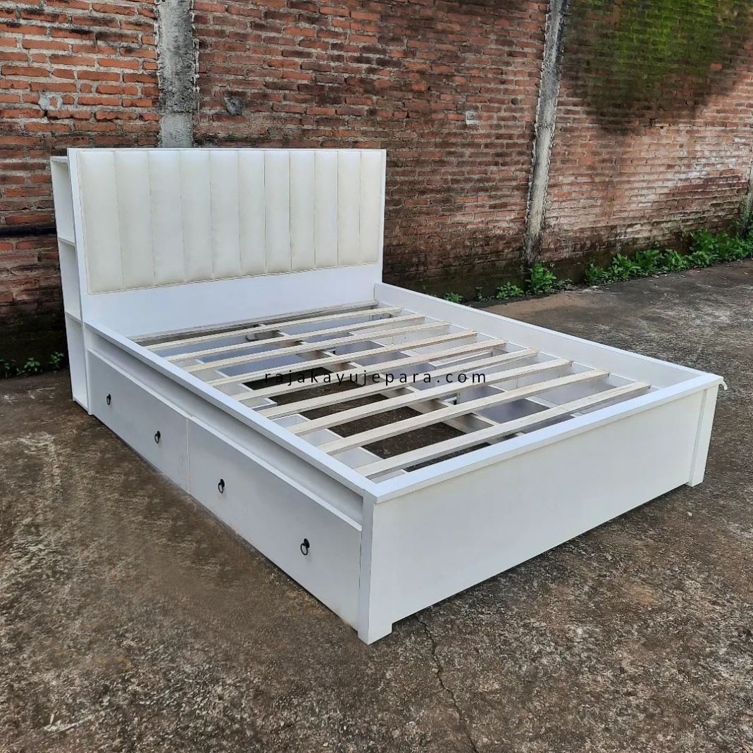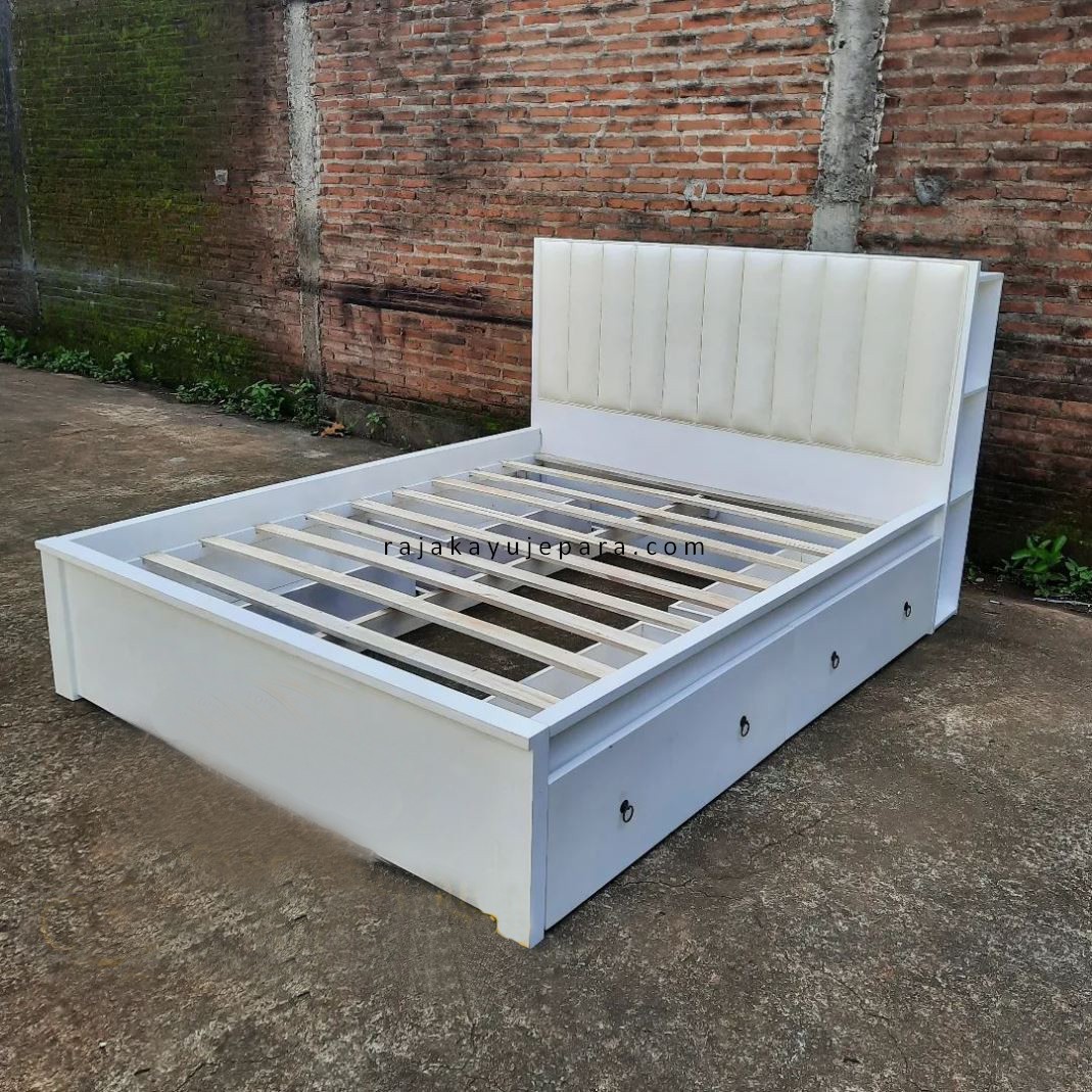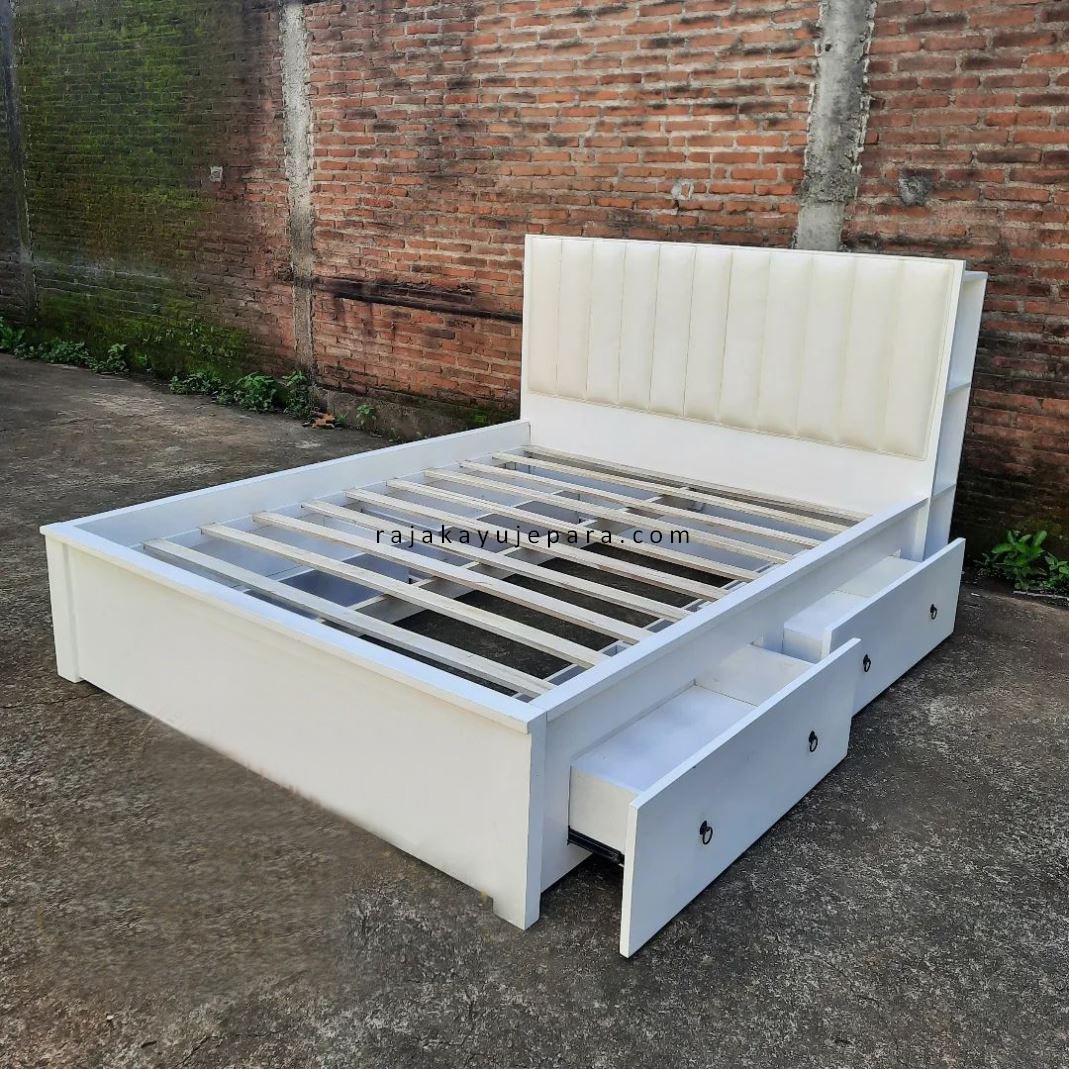 Tempat Tidur Dipan Laci Minimalis Modern Duco Putih RJK-TTDR 06